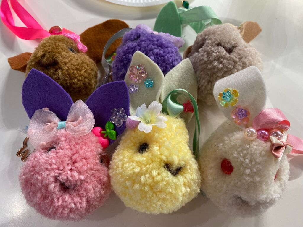うさぎぽんぽんは子供でも簡単に作れるように準備しています。毎年、mari*amuさんはイベントの売上から沢山ご寄付を頂いています。