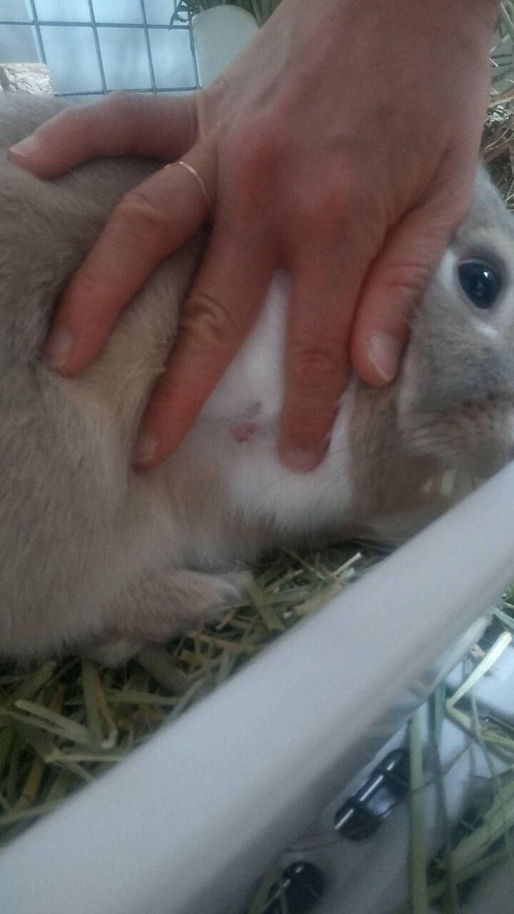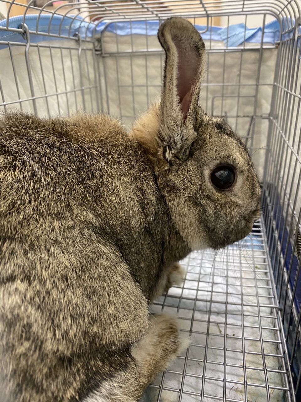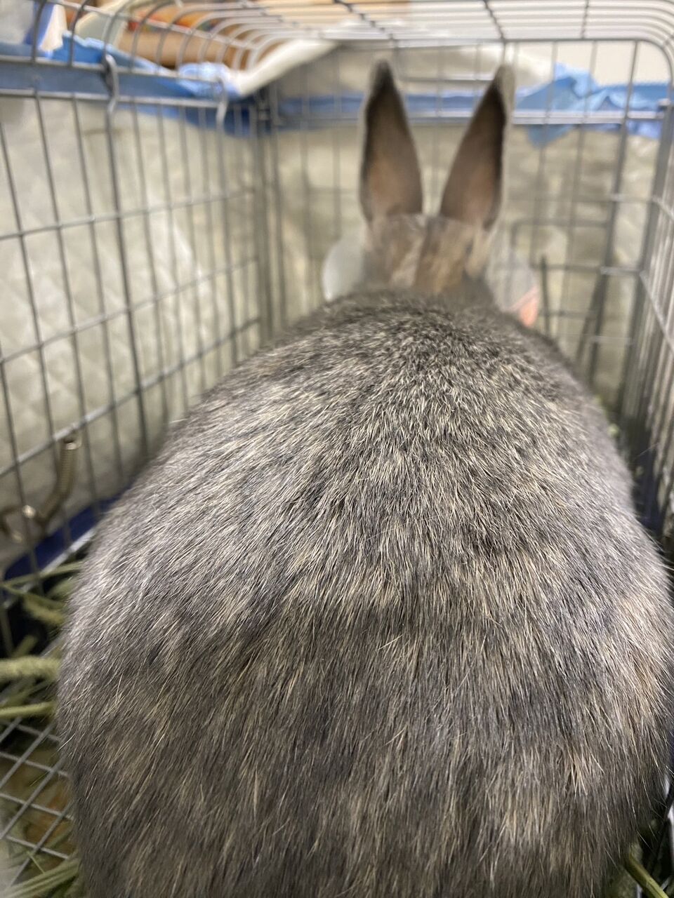 子宮の様子から若いと思われる。保護後すぐに出産で仔うさぎが亡くなってしまったのは妊娠した月齢が若すぎた可能性が高いとのこと。
