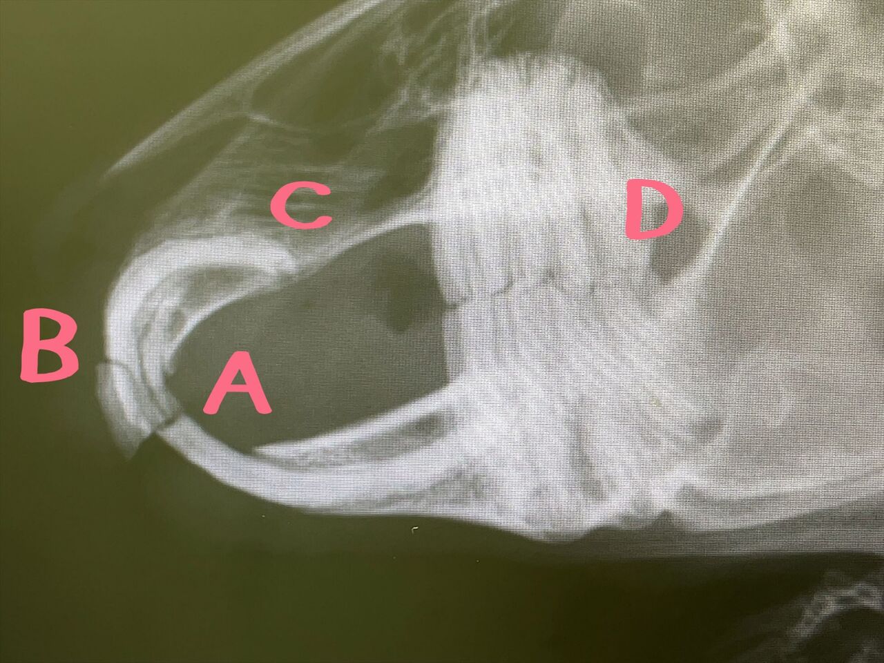 初診で「一度折れていたのがくっついたようだ」と言われていた理由が頭部レントゲンではっきりしました。