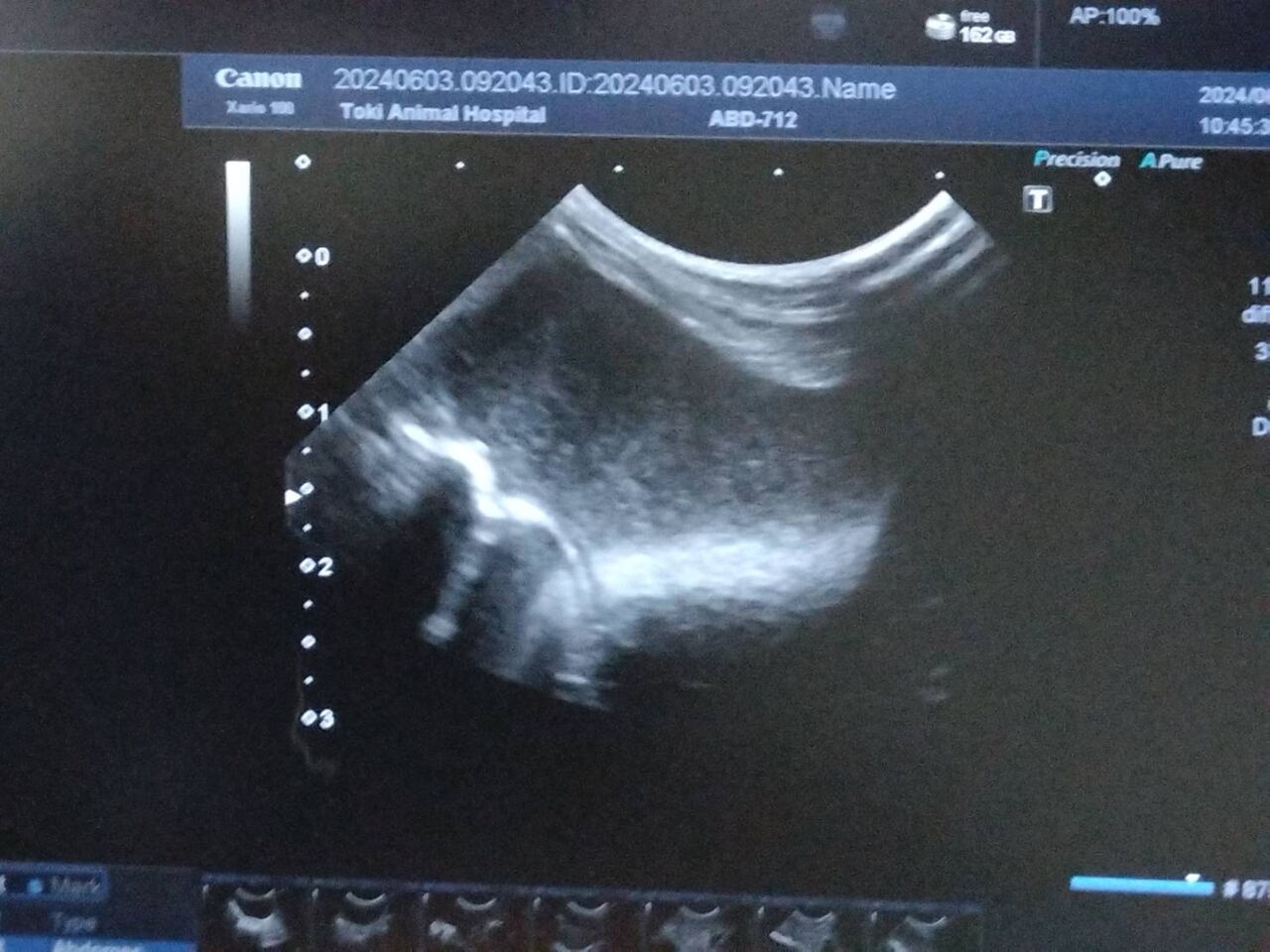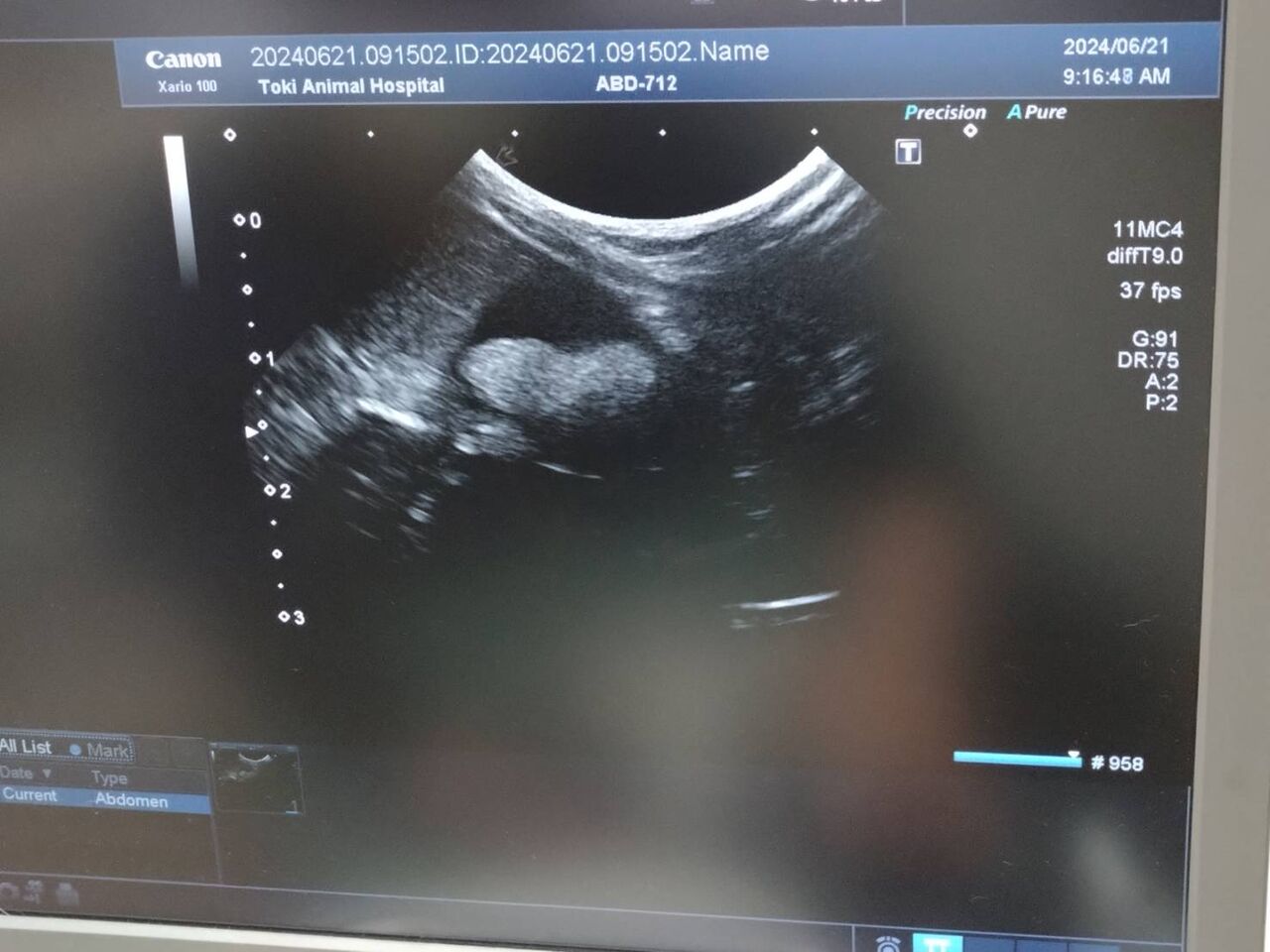 膀胱下にたまっていた砂が大きな2つの塊に変化