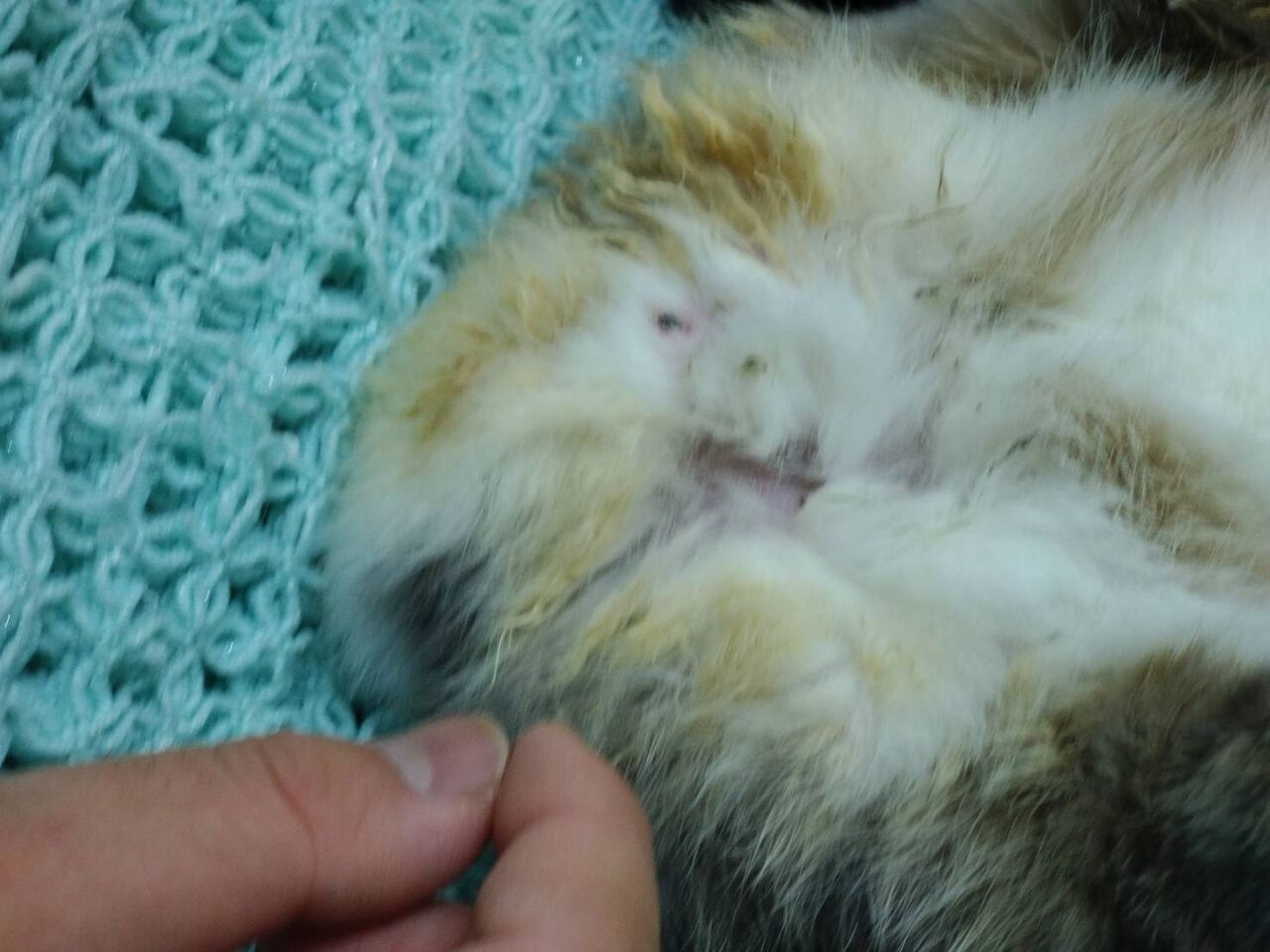 陰部付近がおしっこで汚れていてハゲている部分もあり