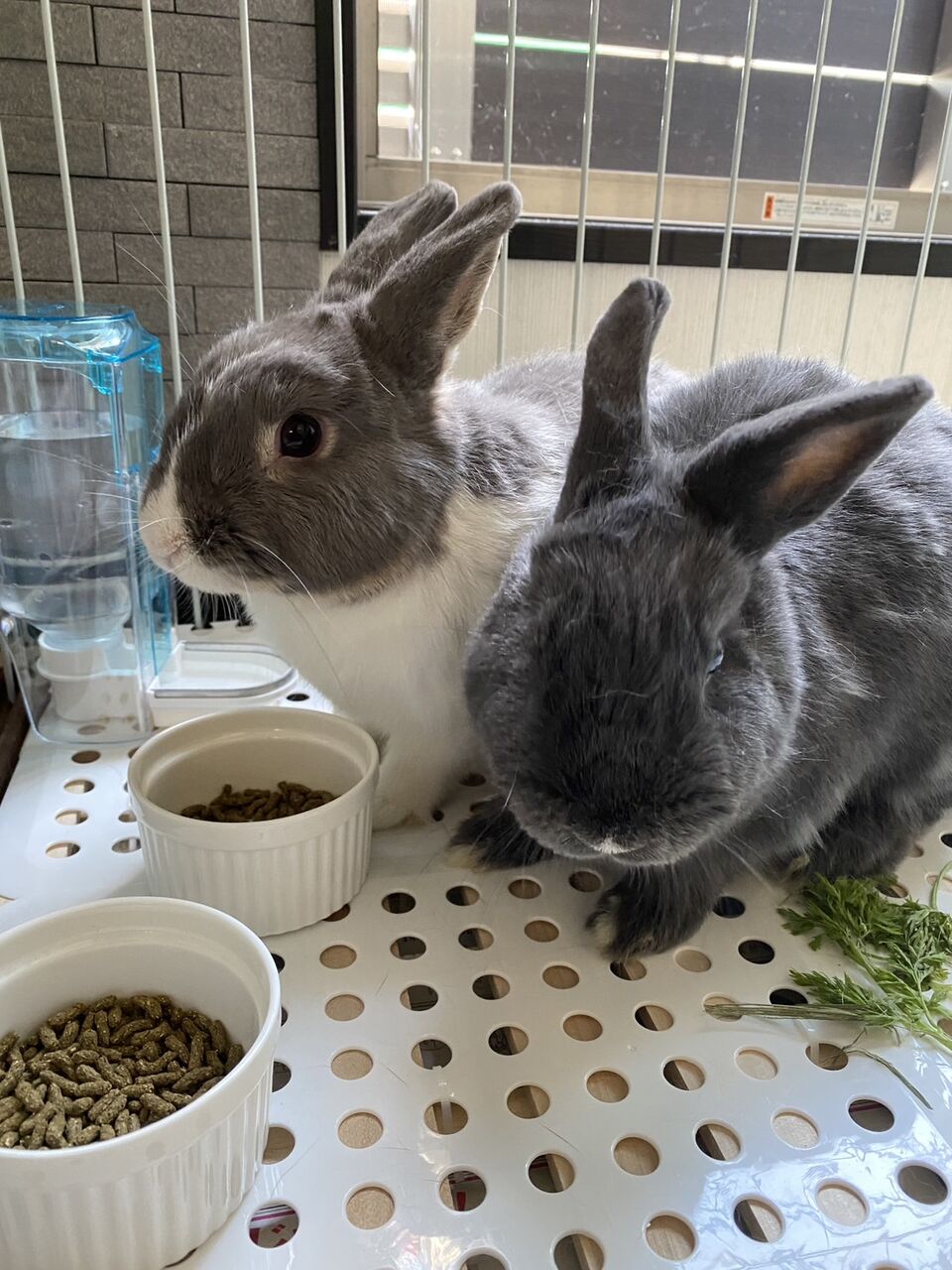 到着後、一旦2匹一緒にケージに入ってもらいました