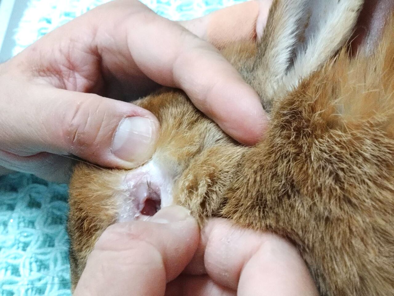 ファサちゃんは左脚が開帳肢のため、自分では綺麗に出来ないらしく、左耳が随分汚れていました。
