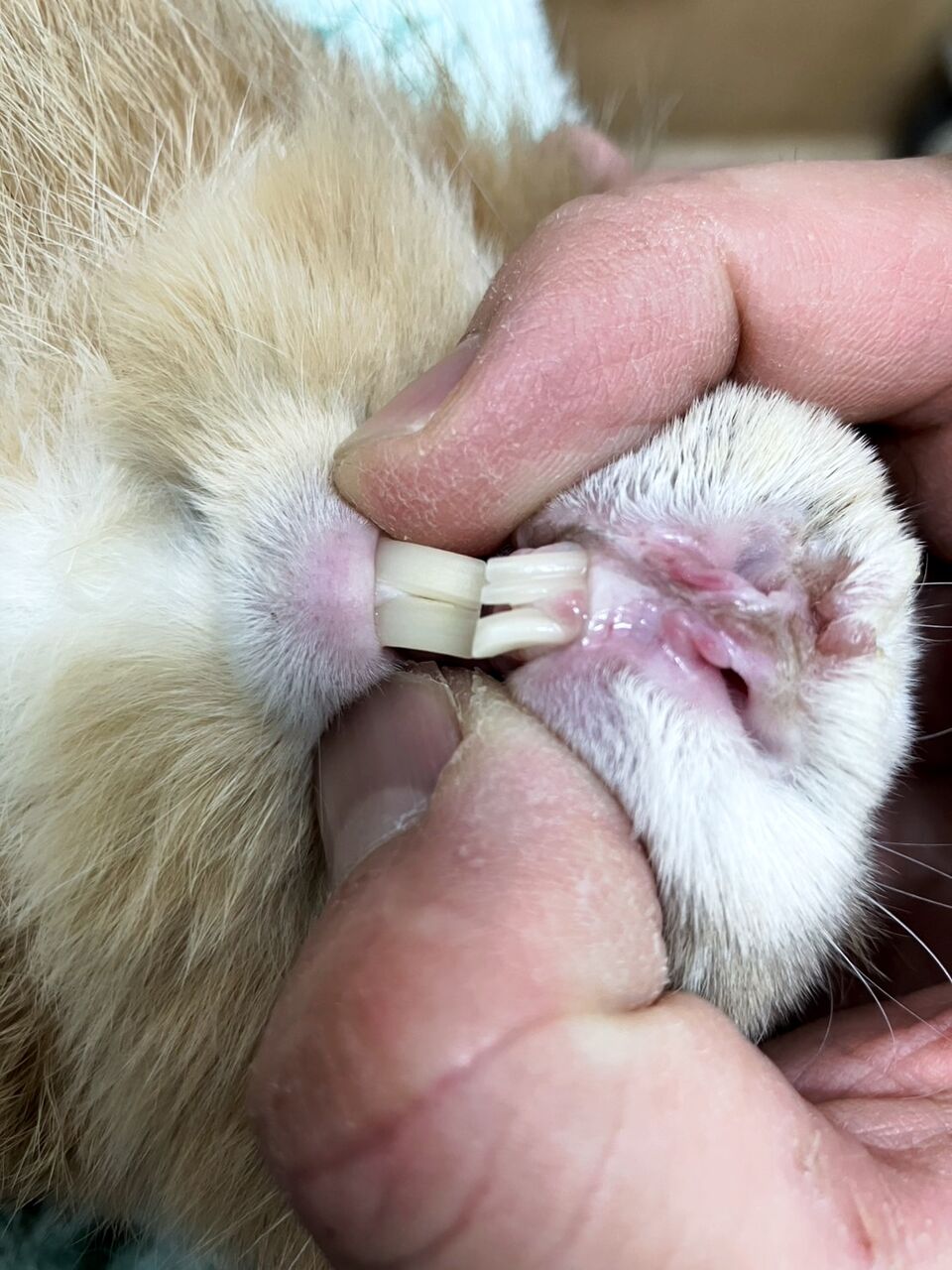 1900g 以前供血依頼で耳から採取した箇所の毛が少し薄くなっていて跡がありましたが問題なし。