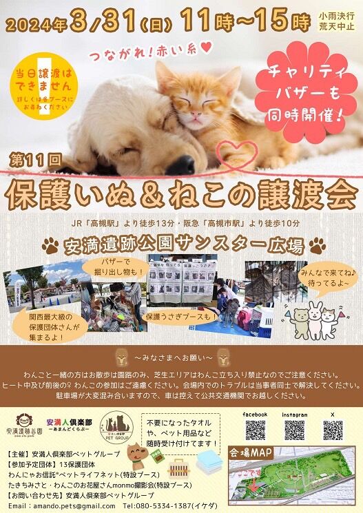3/30参加決定 第13回保護いぬ&猫の譲渡会(高槻市)