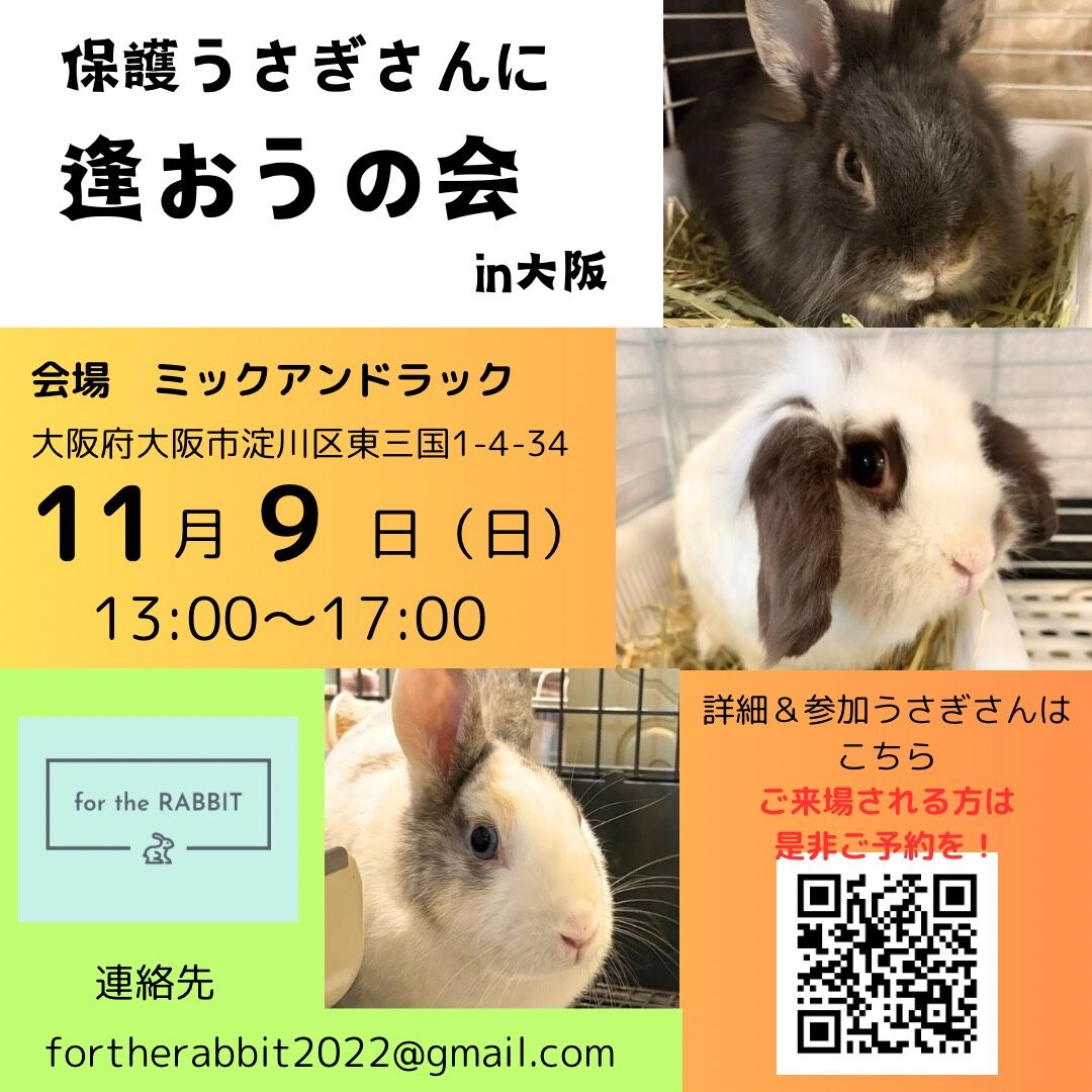 毎月恒例の『保護うさぎさんに逢おうの会in大阪』11月9日開催のご案内です。