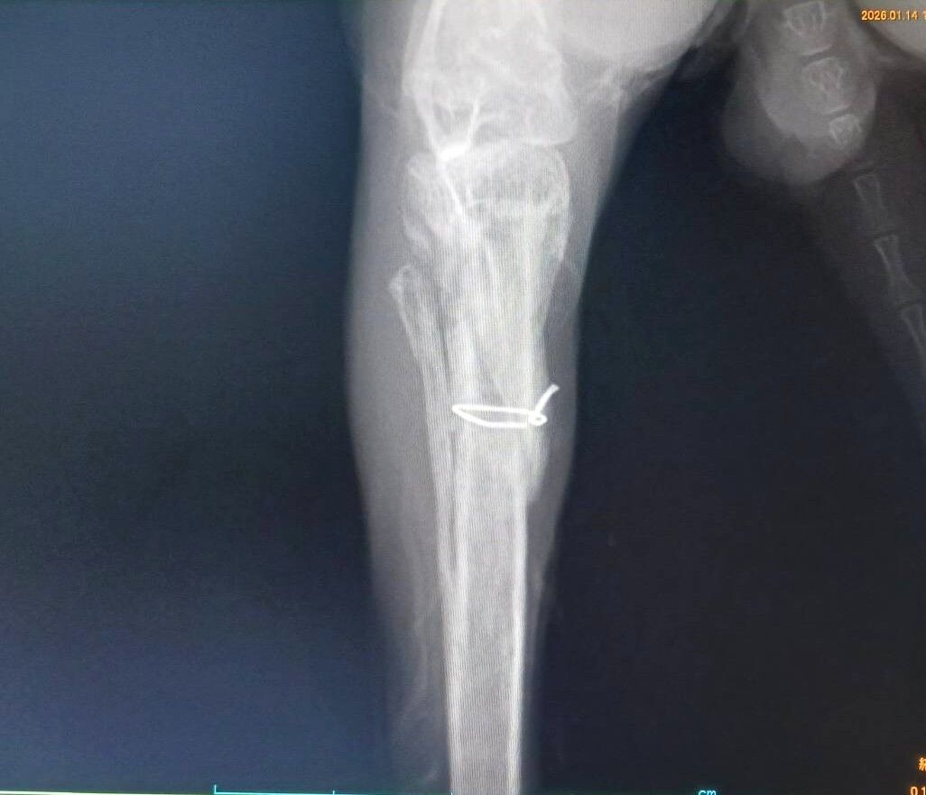 2025年11月に右後ろ脚を骨折し、11/14にピンニング手術を受け、現在も経過観察中です。