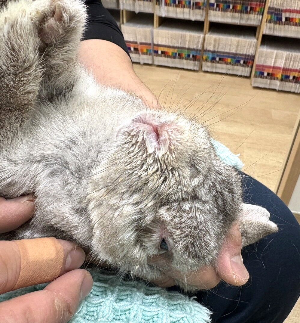 スナッフルのため鼻涙管洗浄と点滴で通院中。2025年8月に鼻骨円鋸手術を受けています。